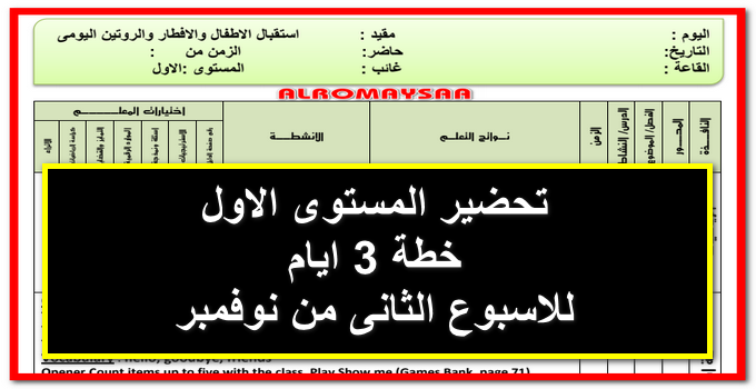 تحضير المستوي الاول خطة 3 ايام رياض اطفال للاسبوع الثانى من نوفمبر